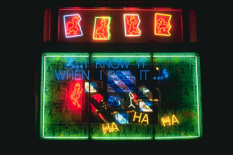 and illuminates them with biting irony. Judge Potter Stewart's infamous
